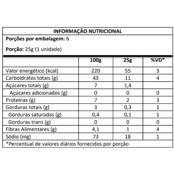 Cenoura orgânica, farinha de trigo orgânica integral, farinha de trigo orgânica, tâmara, azeite de oliva extra virgem, fermento biológico, sal marinho.