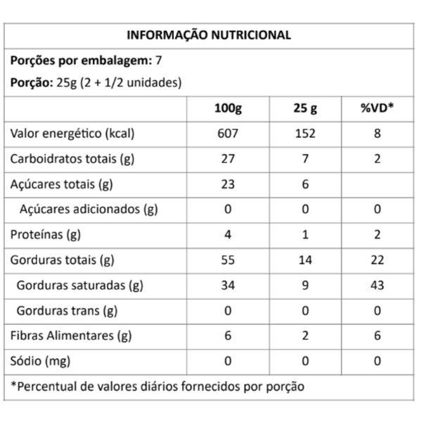 Manteiga de cacau, tâmara e cacau 100% orgânico.